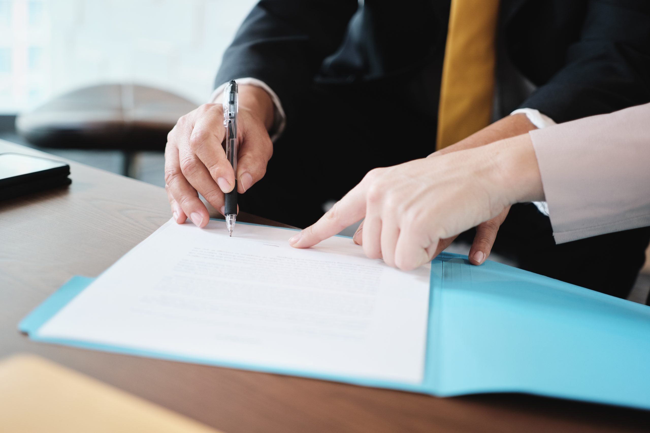 Asian Manager Signing Agreement For Health Insurance With Business Woman